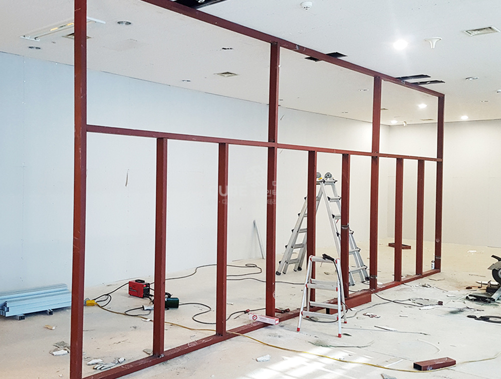 부분적으로 확장 및 가벽공사를 진행하였으며,