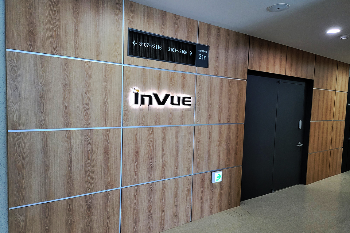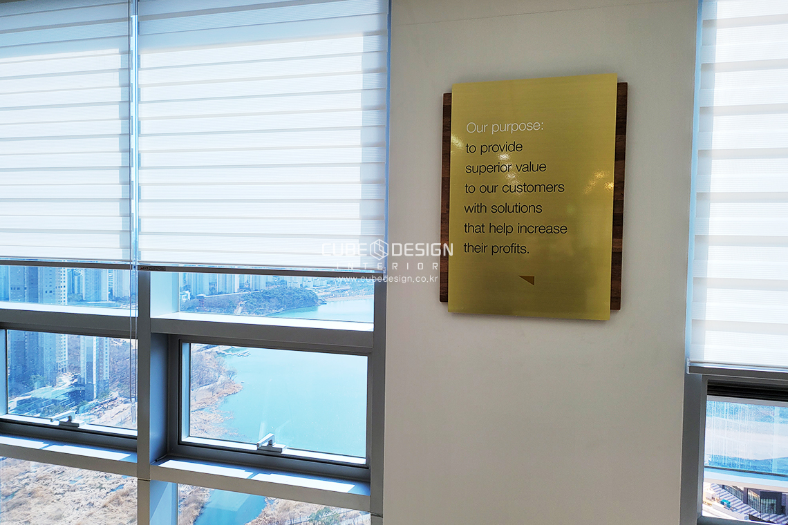 엘리베이터 앞쪽위치로 회사로고가 돋보이게 제작되었습니다.