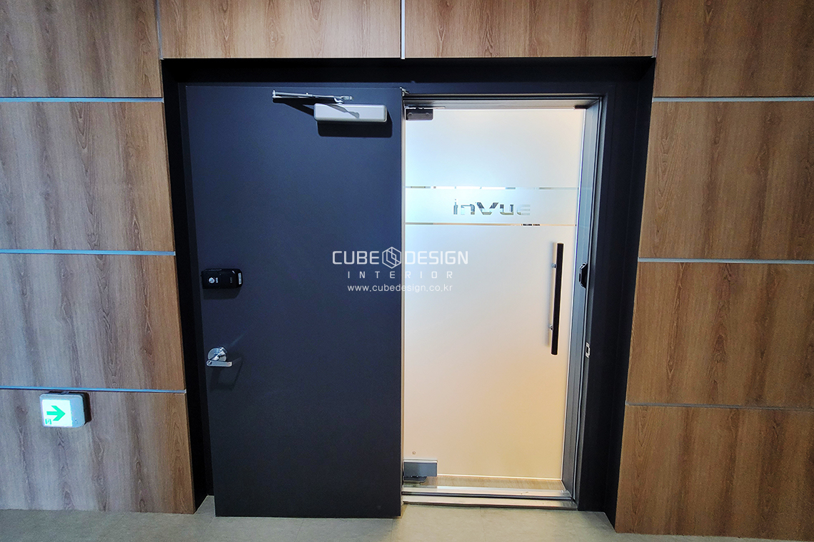 입구문에는 편개 방화문과 강화유리도어 설치로