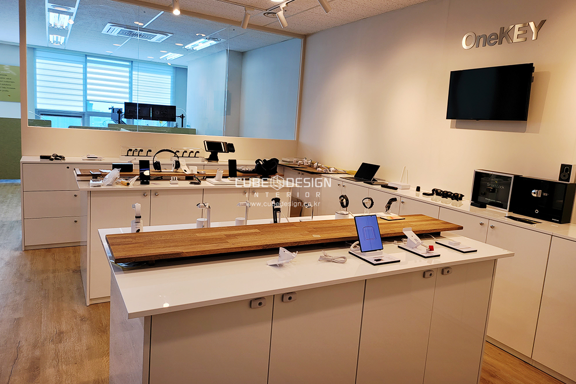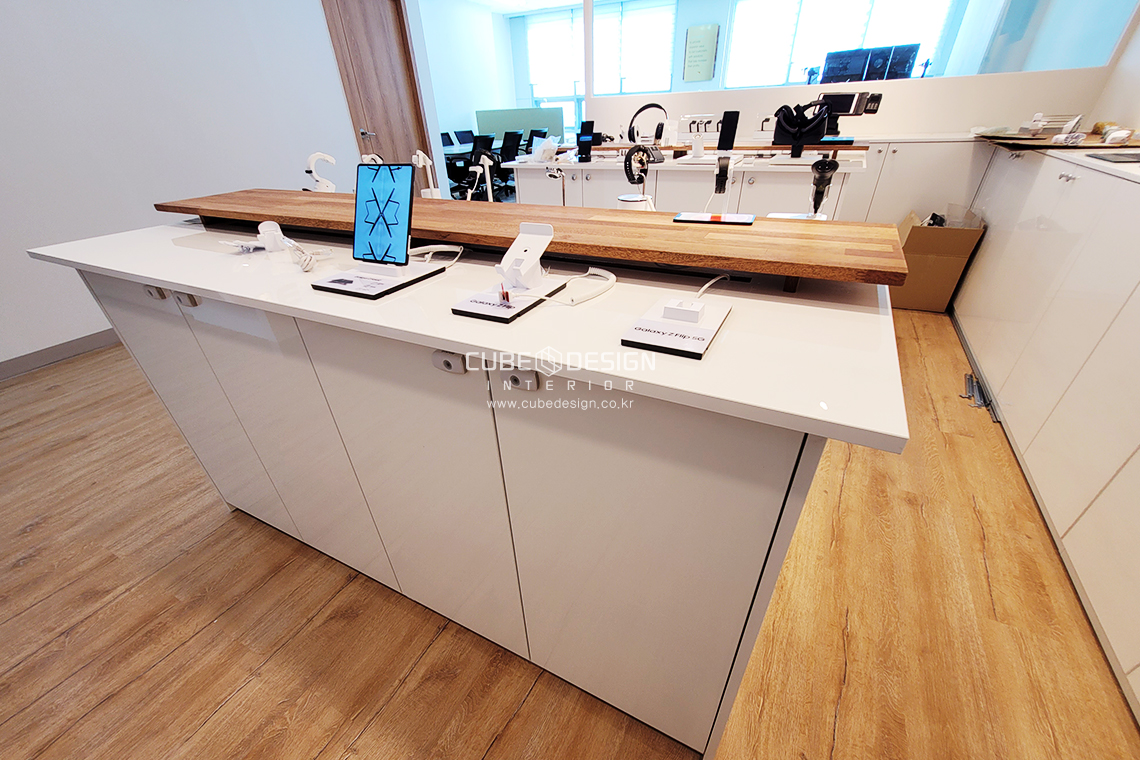 쇼룸공간에는 IT기기들이 전시될 수 있도록 맞춤가구에