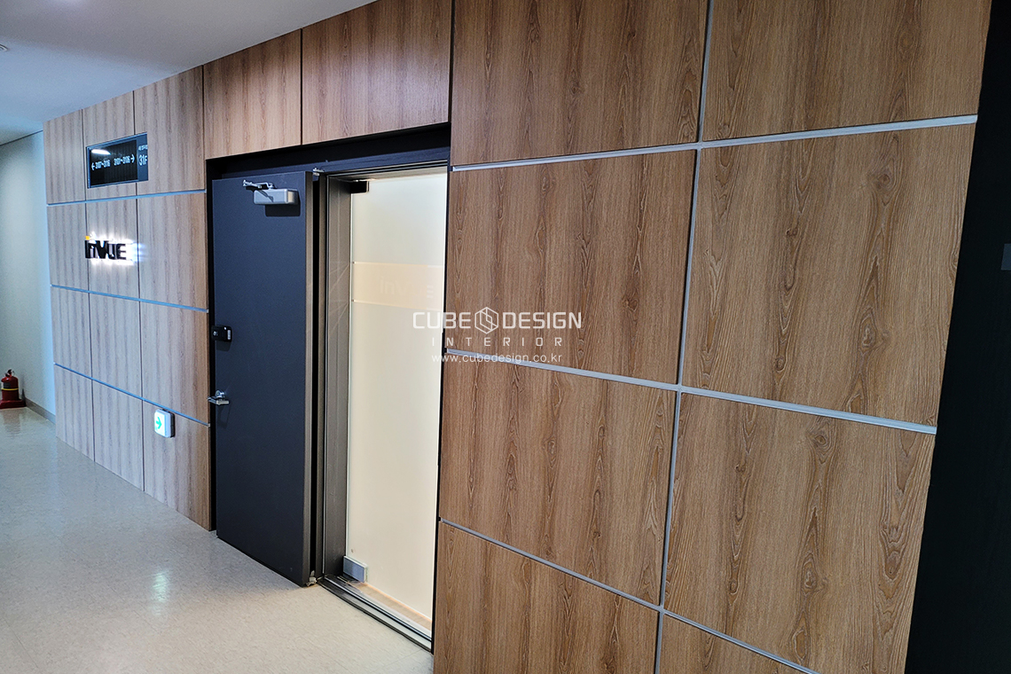 엘리베이터 앞쪽위치로 회사로고가 돋보이게 제작되었습니다.