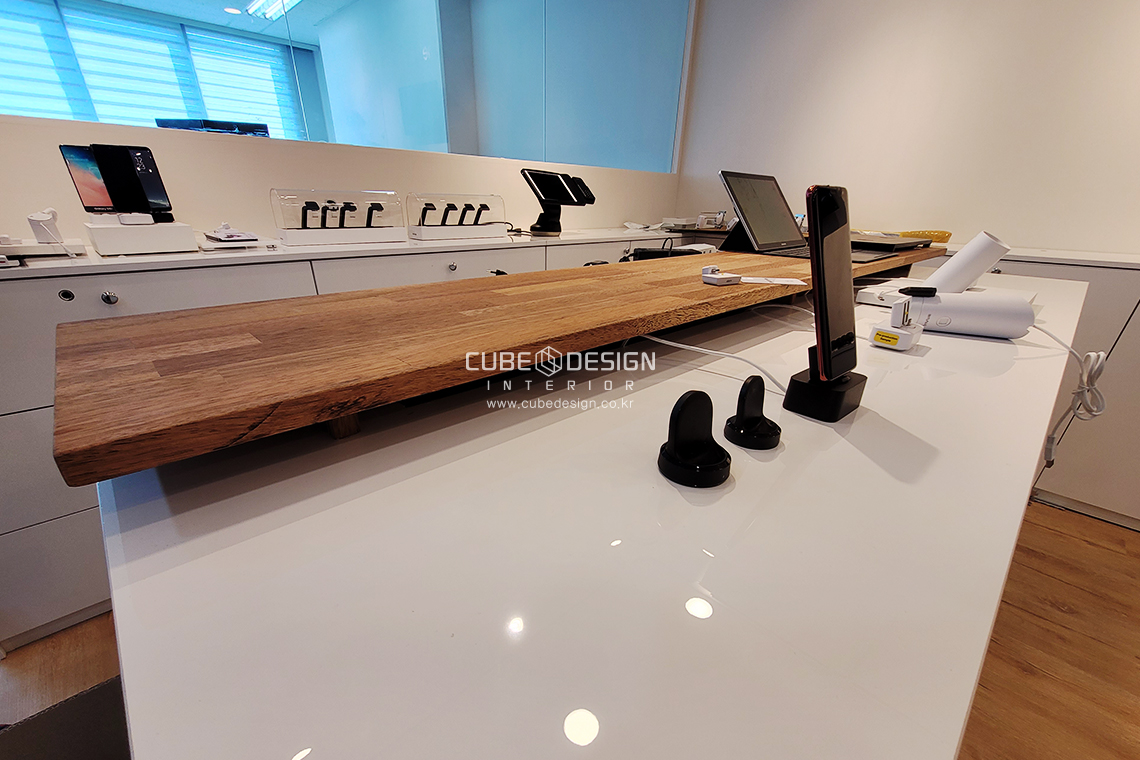 쇼룸공간에는 IT기기들이 전시될 수 있도록 맞춤가구에