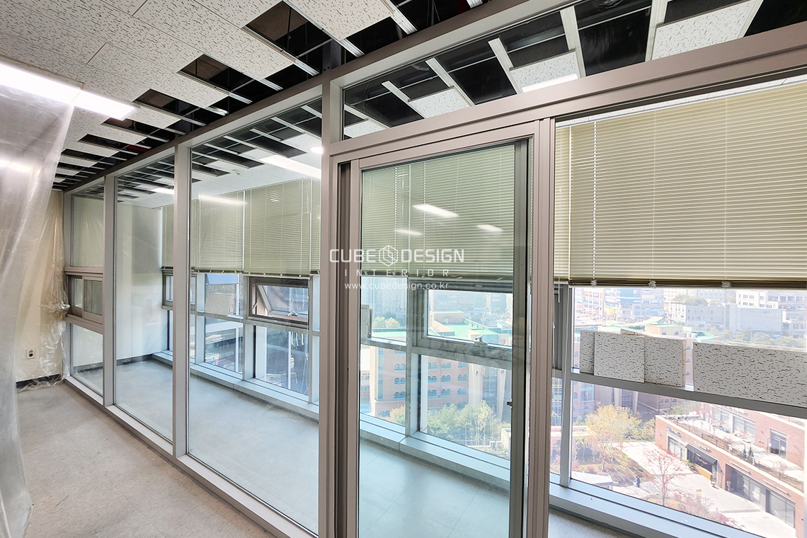 내부 사무실인테리어 칸막이 공사와 발코니확장공사를 진행하였습니다.
