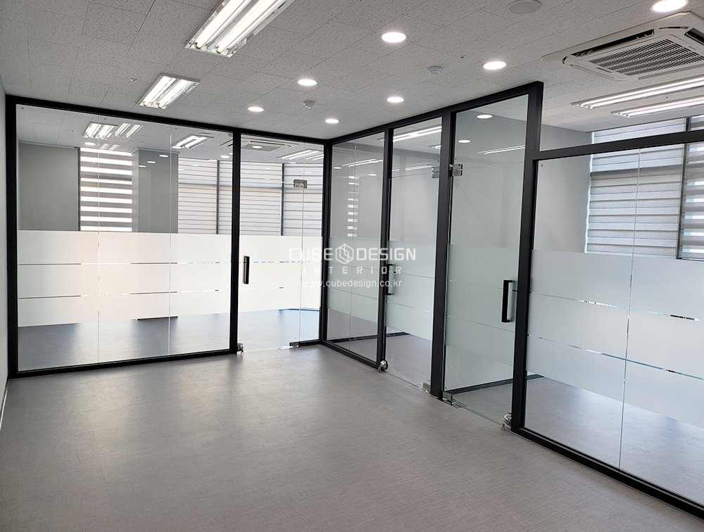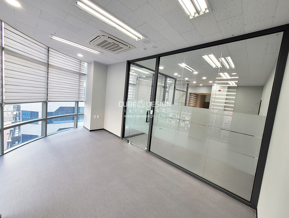 안녕하세요. 큐브디자인입니다. 오늘 소개해 드릴 현장은 광교 수원지방법원 주변에 위치한 20평 타워건물에 유리칸막이 및 인테리어를 진행하였는데요.