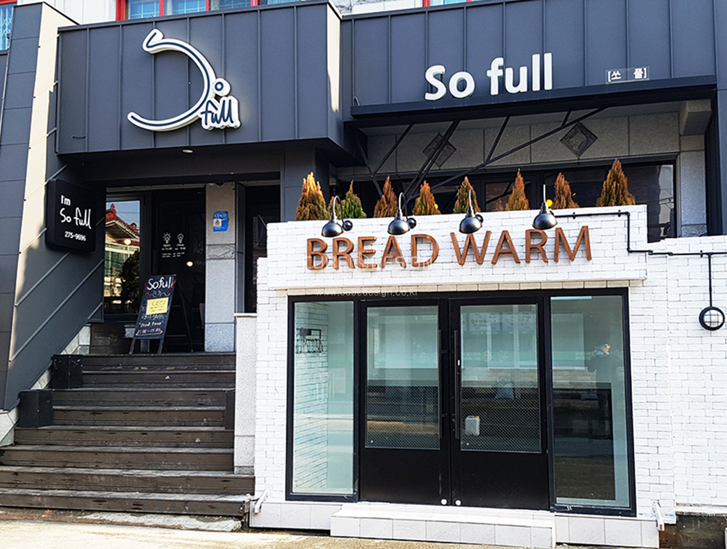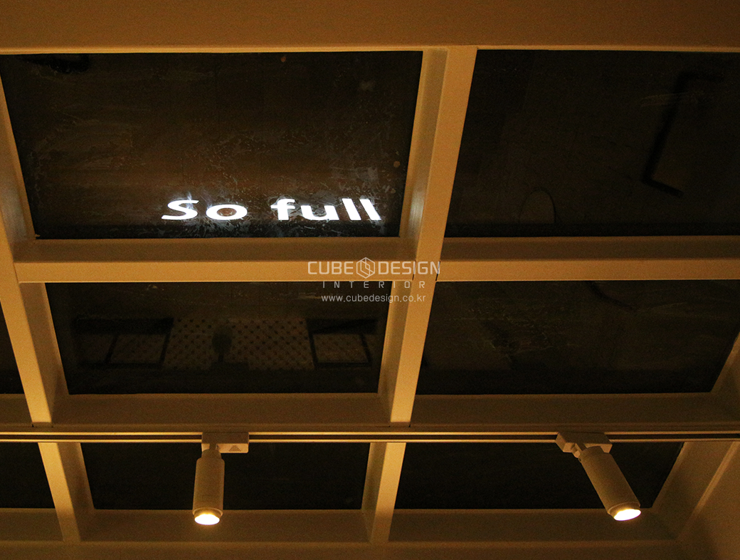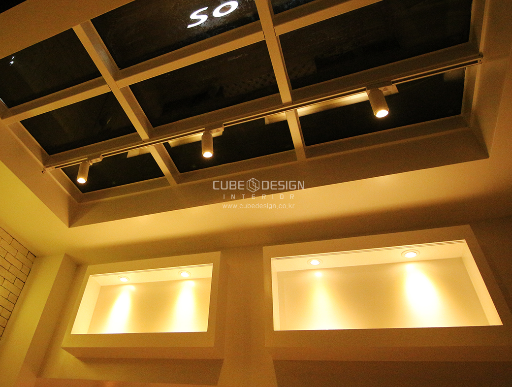 상호에 어울리도록 주광색 조명을 이용하여 간판을 비춰주었습니다.