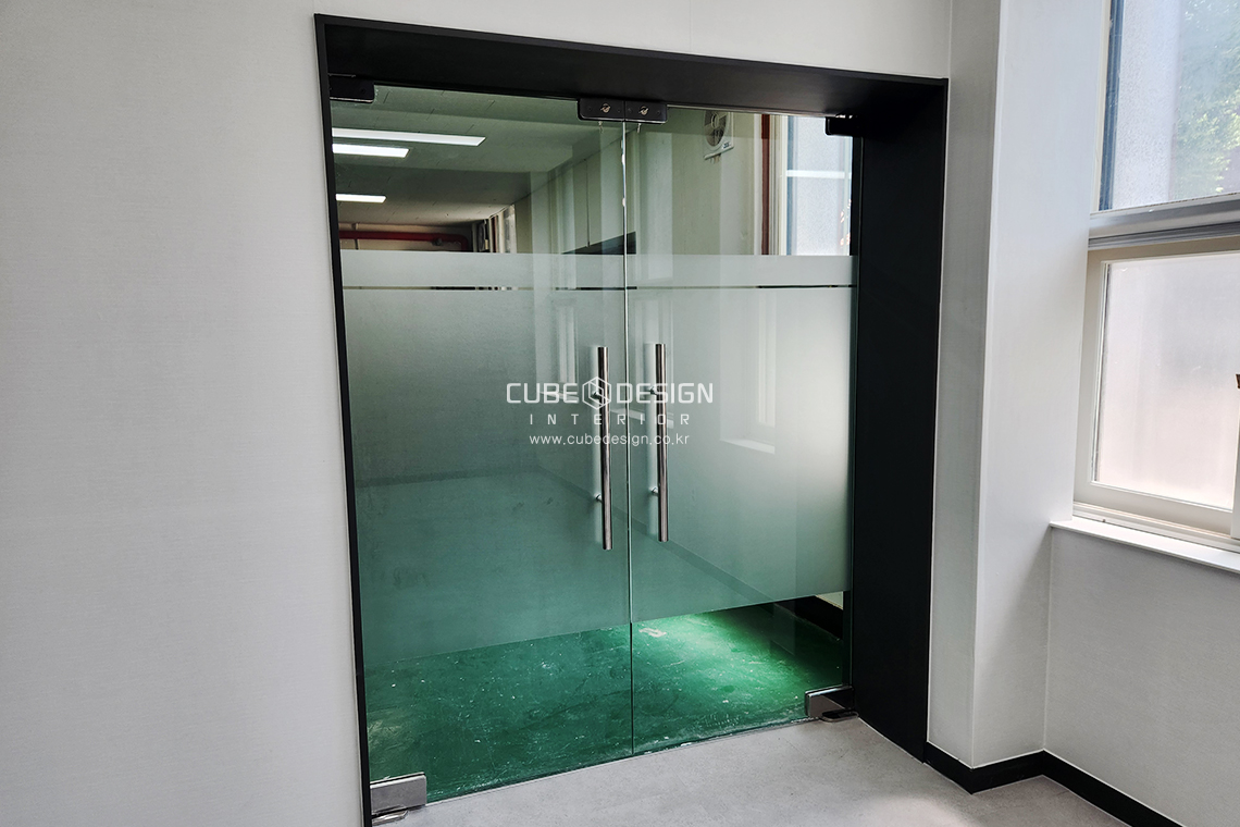 공장동과 회의실을 구분하기 위해 강화유리문을 설치했습니다.
