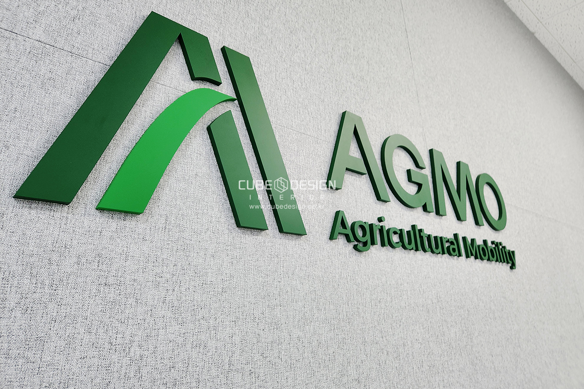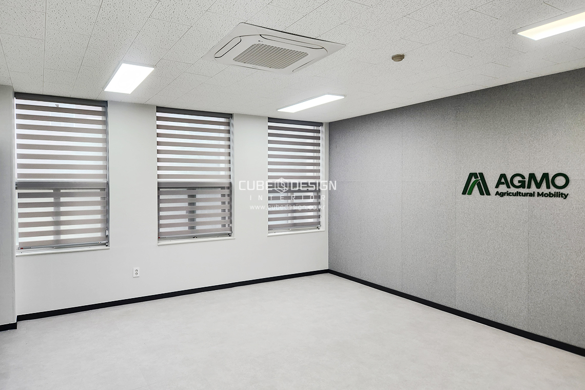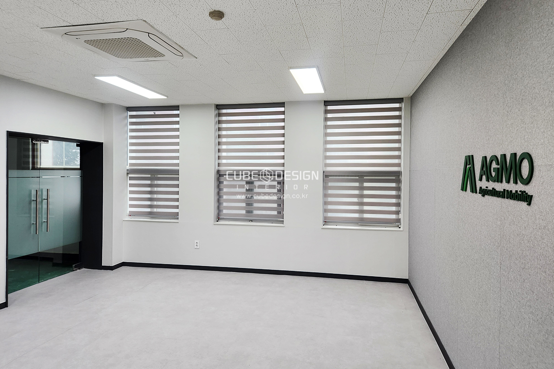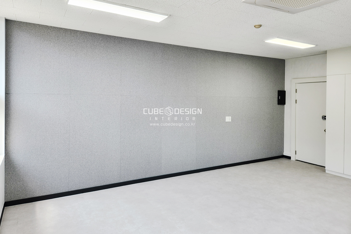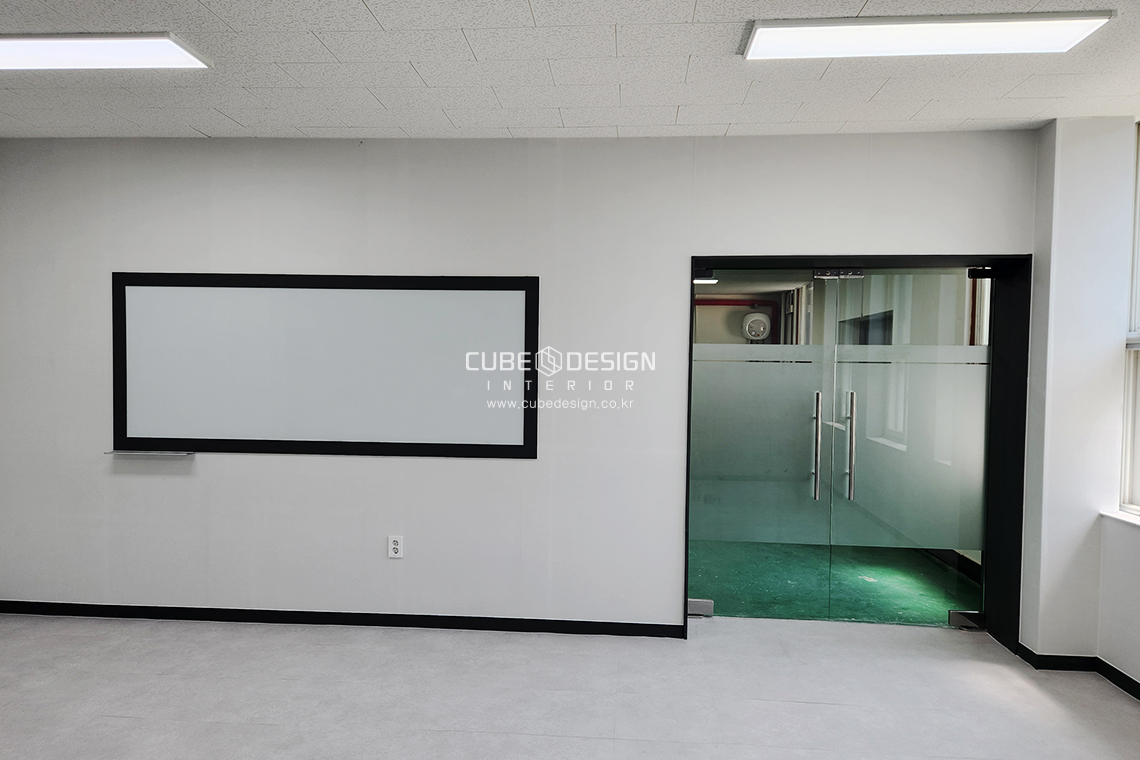 공사 완료 후의 모습입니다. 회의실 벽면에는 회사의 아이덴티티를 강조하기 위해