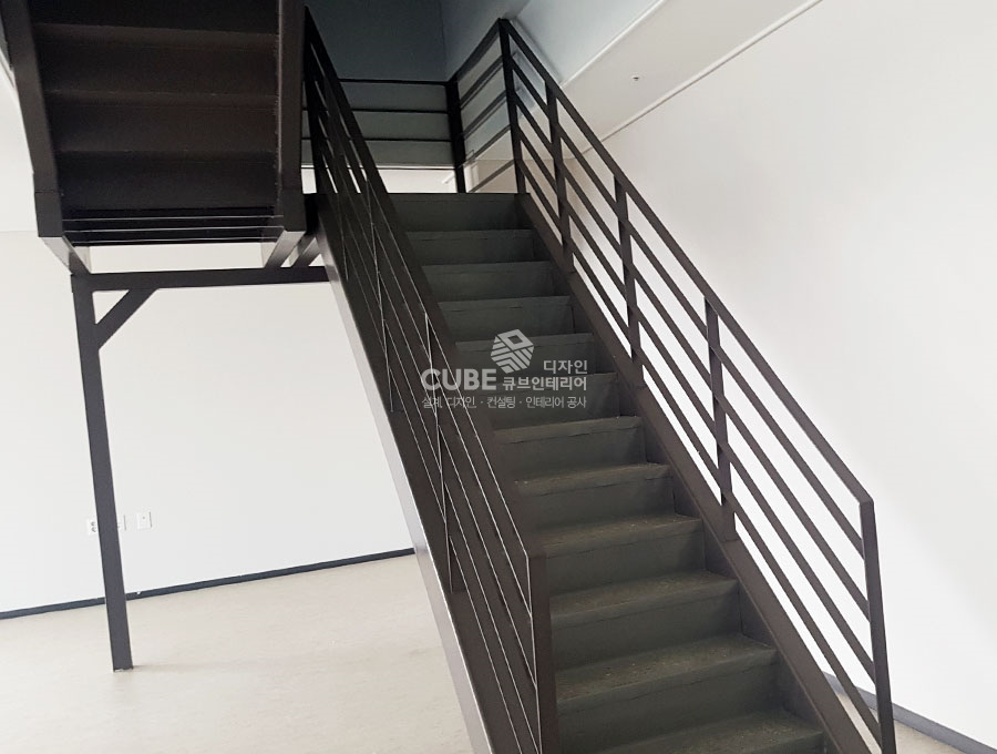 복층구조의 사무실이기에 계단을 만들어 튼튼하게 보강한뒤, 페인트를 발라 마감하였습니다.