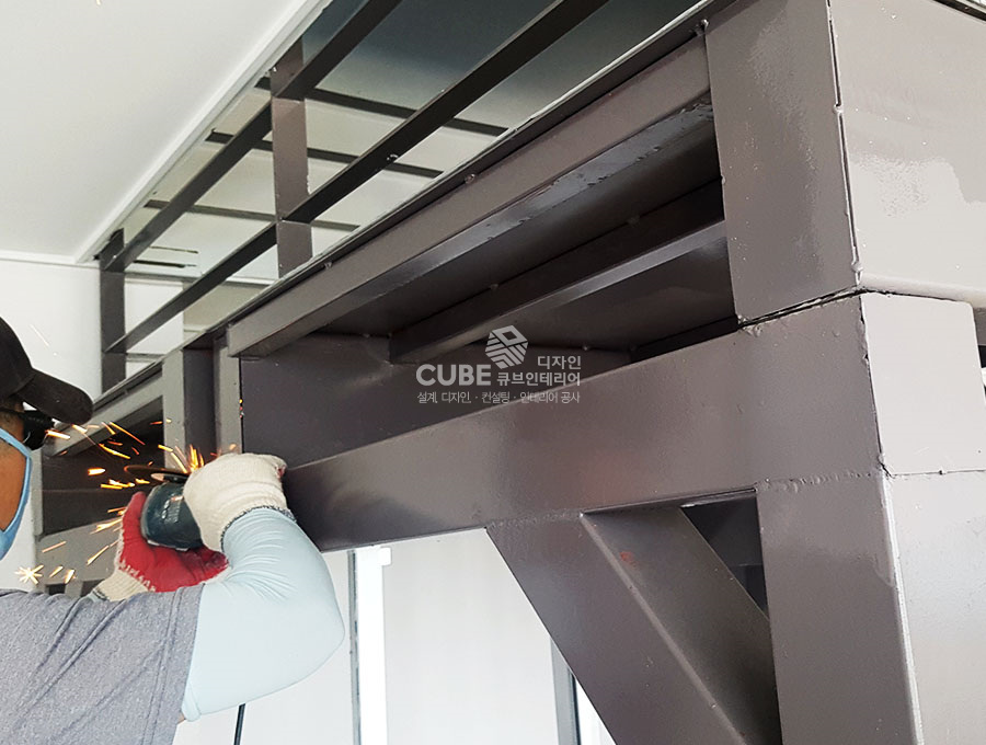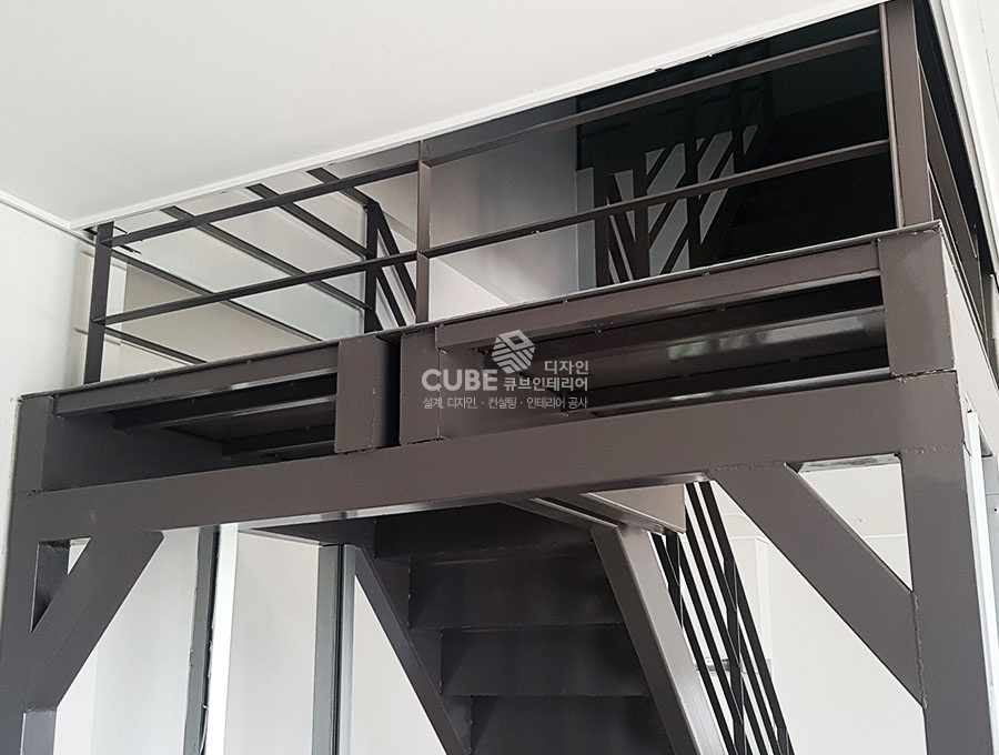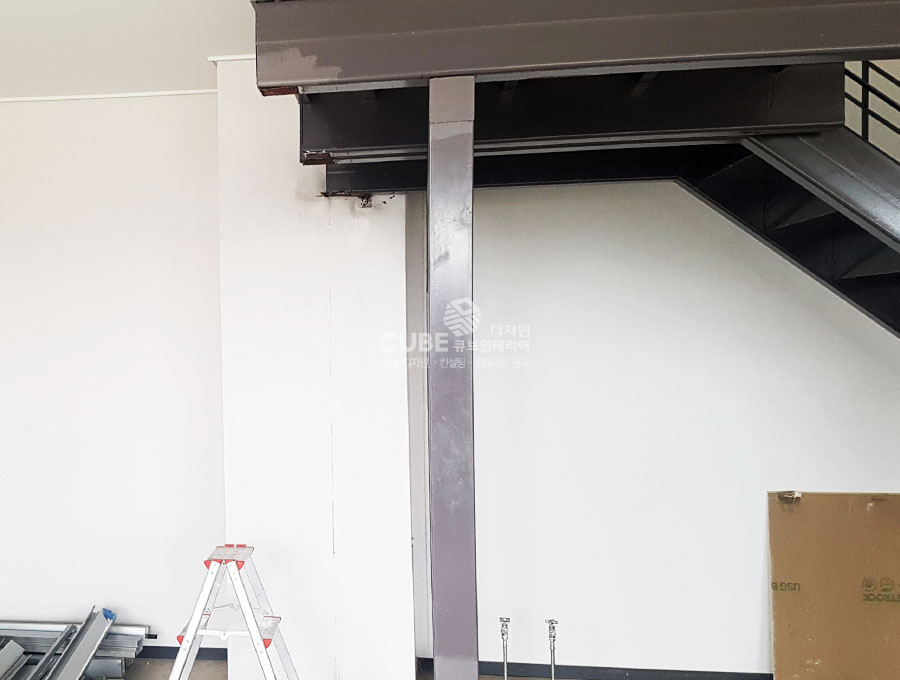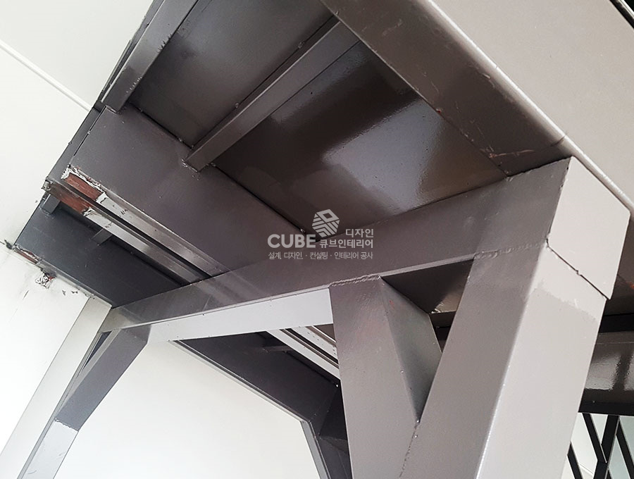 복층구조의 사무실이기에 계단을 만들어 튼튼하게 보강한뒤, 페인트를 발라 마감하였습니다.