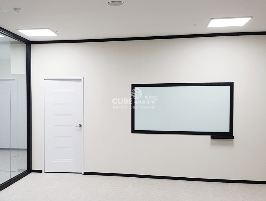 회의실내부에는 컬러유리를 칠판으로 활용하여 공간을 확보함과 동시에 편하게 회의를 할 수 있도록 설계하였습니다.