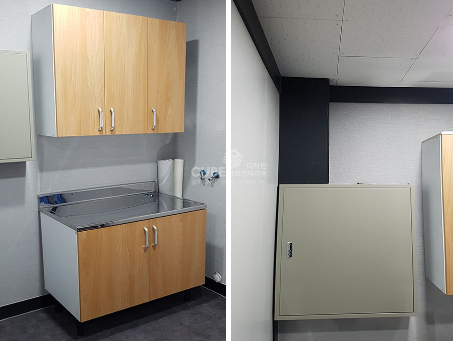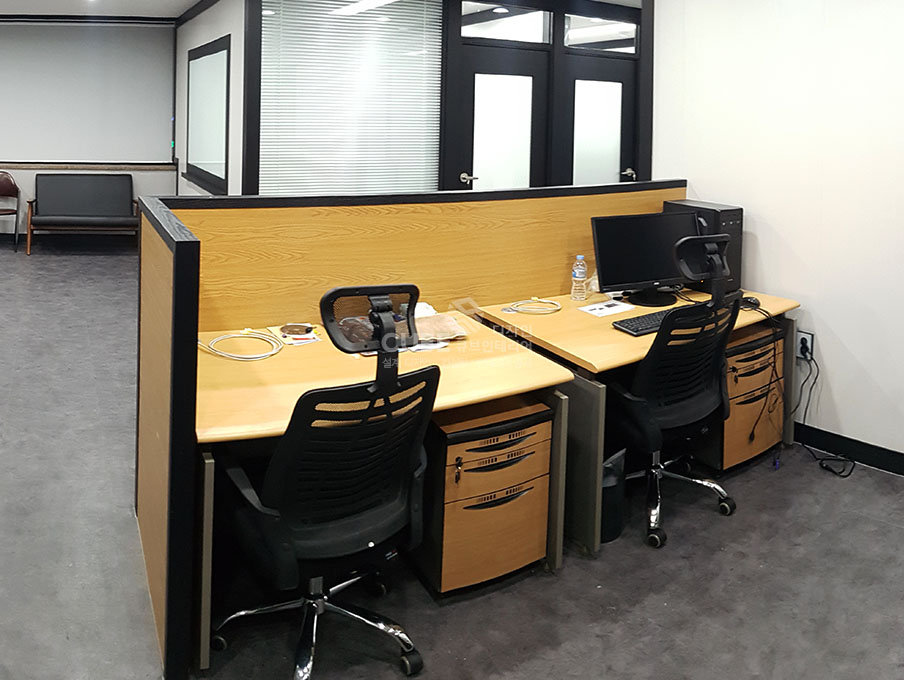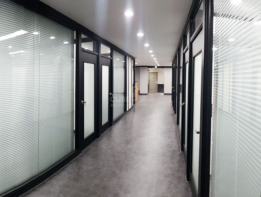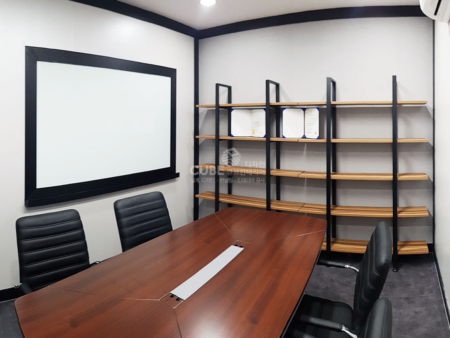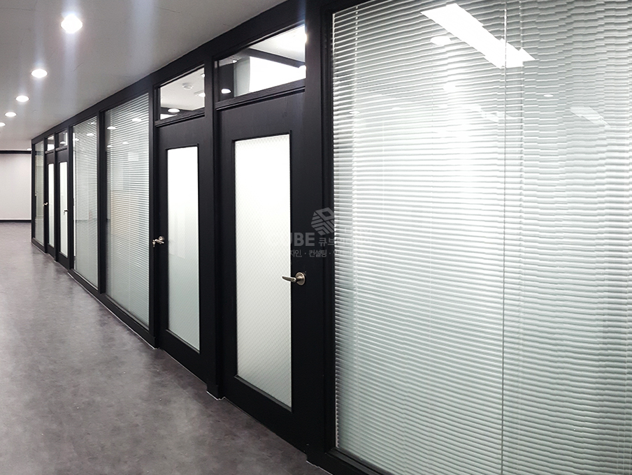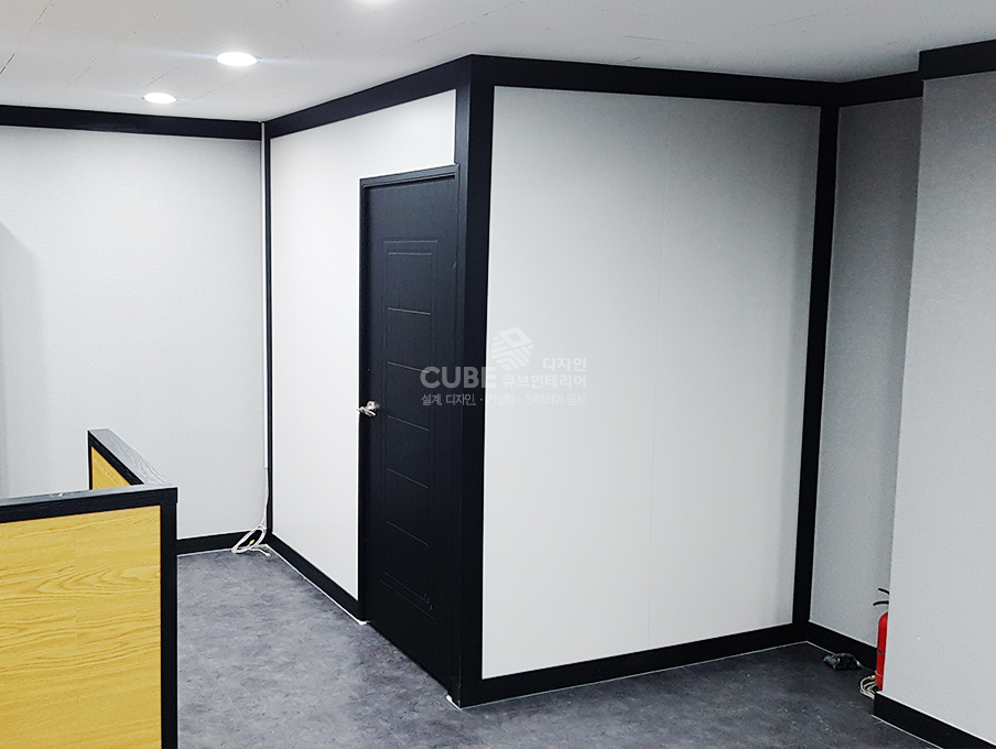 큐브디자인 인테리어에서 칸막이공사와 목공사도 최대한 기성색상에 맞춰 합리적인 가격대로 진행되었습니다.