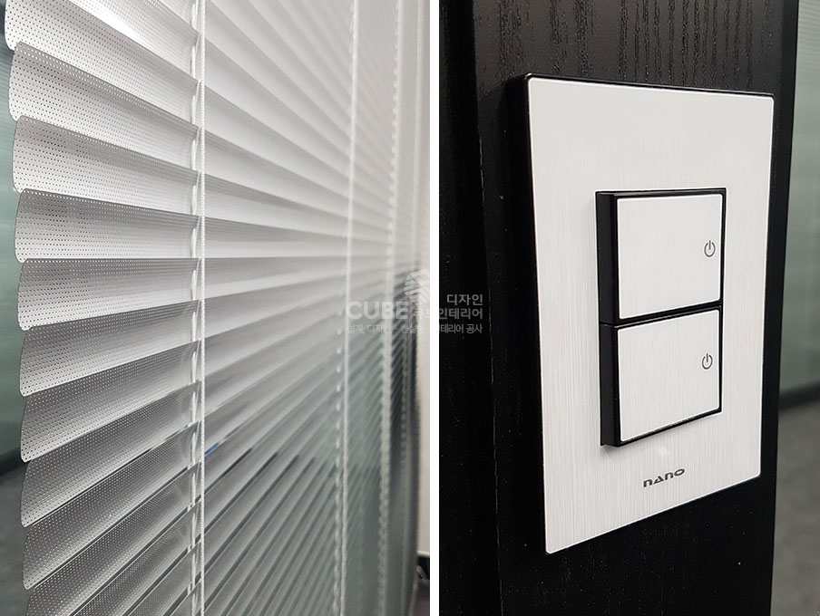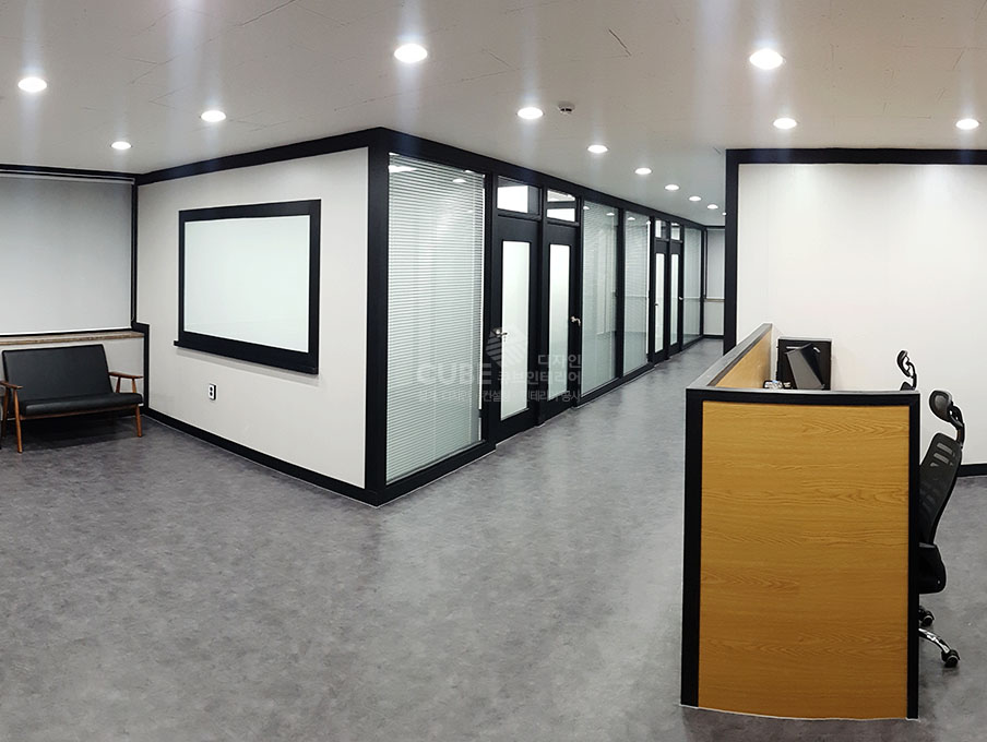 큐브디자인 인테리어에서 칸막이공사와 목공사도 최대한 기성색상에 맞춰 합리적인 가격대로 진행되었습니다.