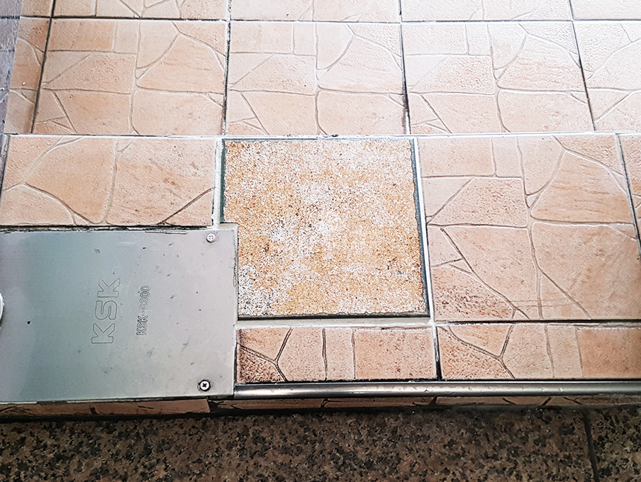 기존 깨진타일 철거후 최대한 비슷한타일로 재시공해드렸습니다!