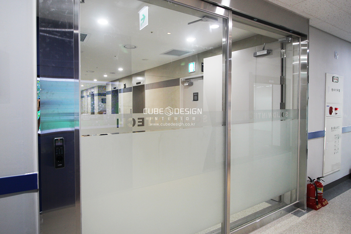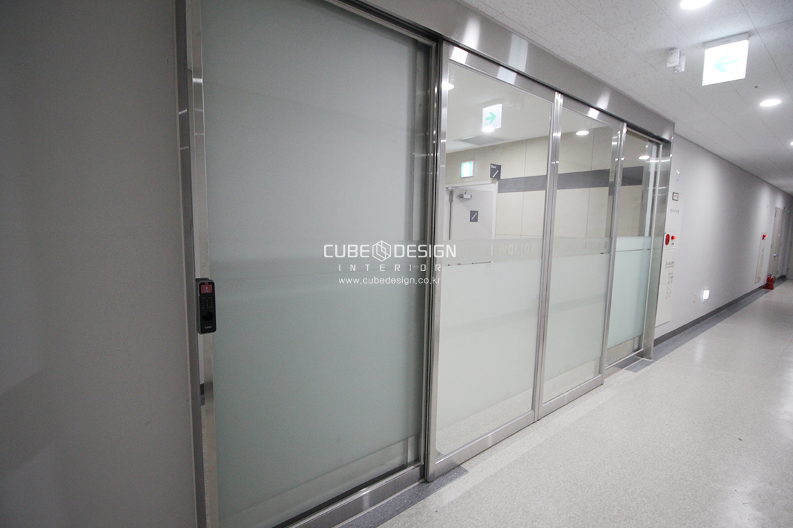 양쪽의 복도에는 기존 방화문을 모두 철거작업 및 강화유리도어 설치