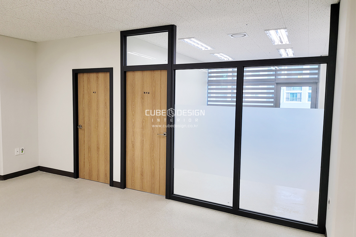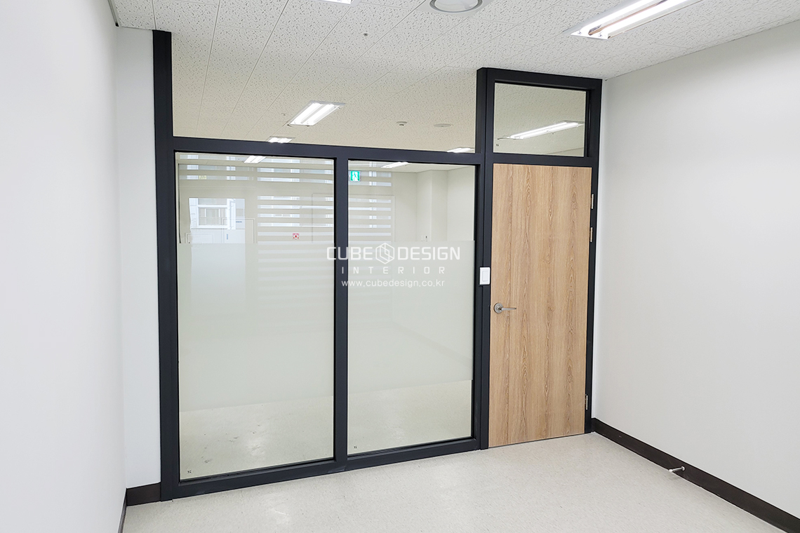 유리칸막이는 진그레이+우드느낌으로 깔끔하게 마감되었습니다.