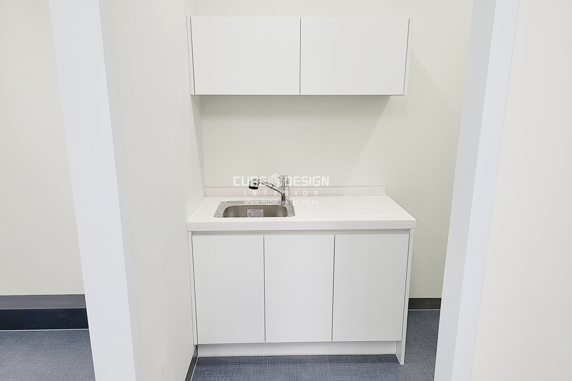 간단한 회의실과 탕비실에는 맞춤가구 공사