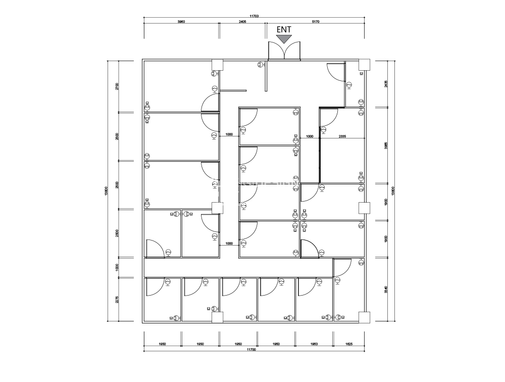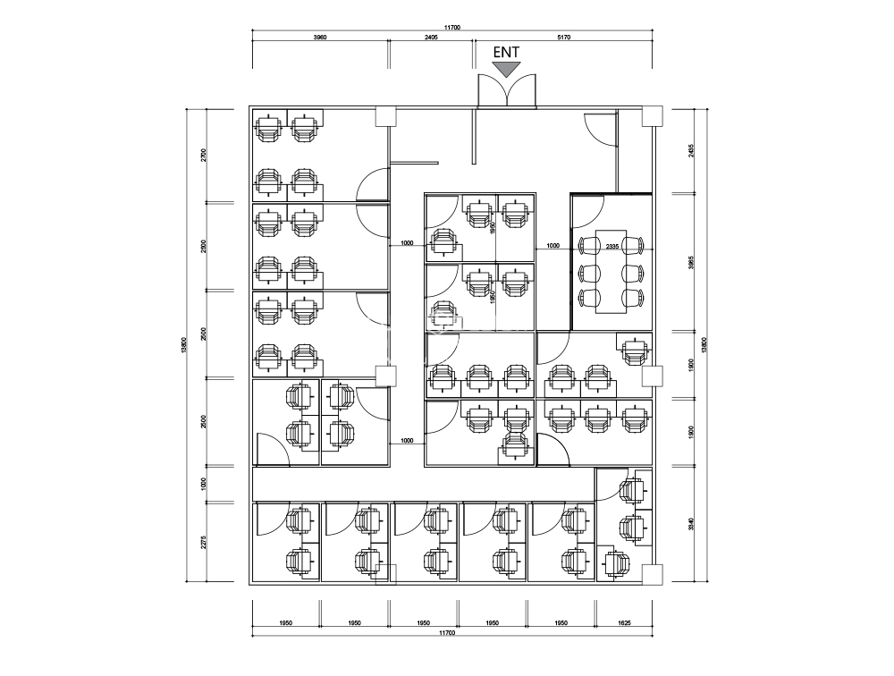공사를 시작하기전 도면에 책상 및 집기를 배치하여 한번더 확인해봅니다.