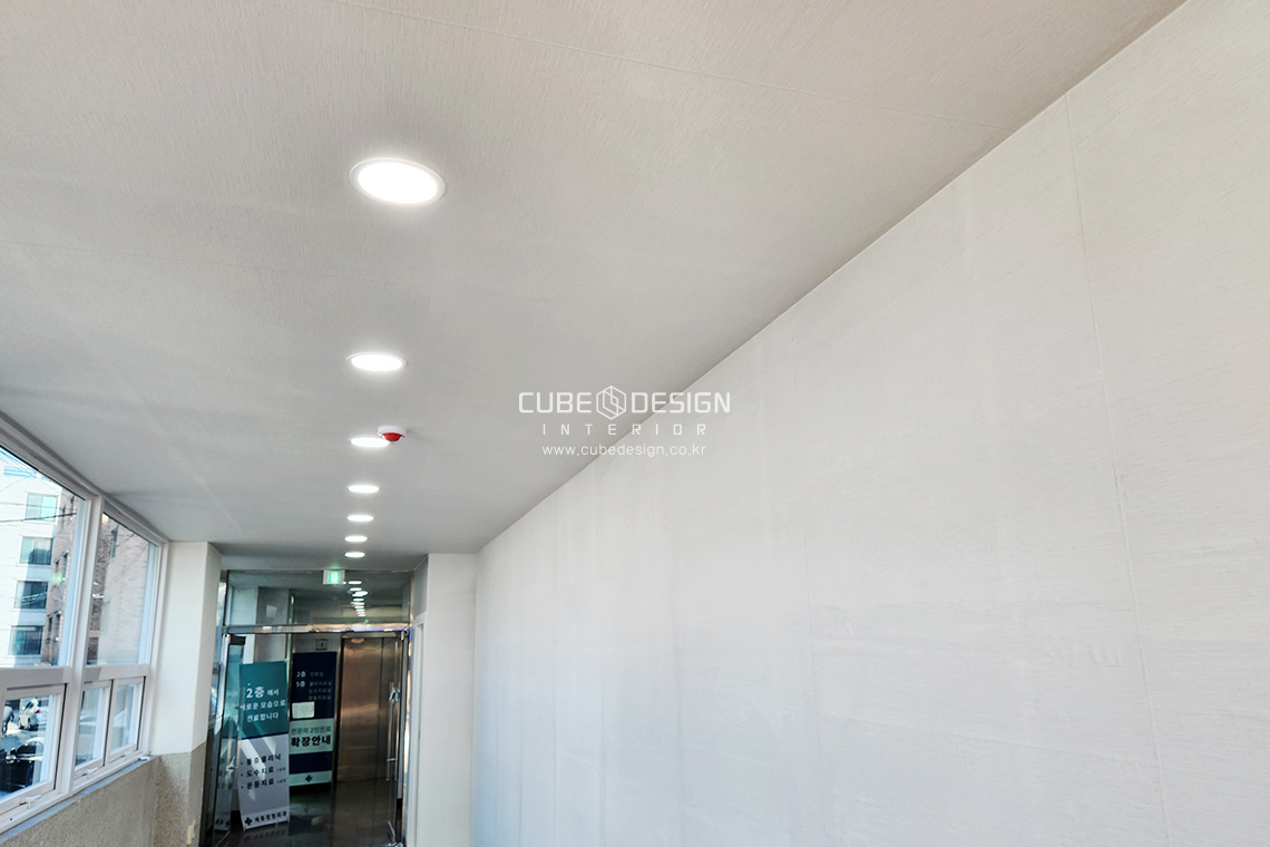메인복도는 석고면 위 합지마감으로 마감하였습니다.