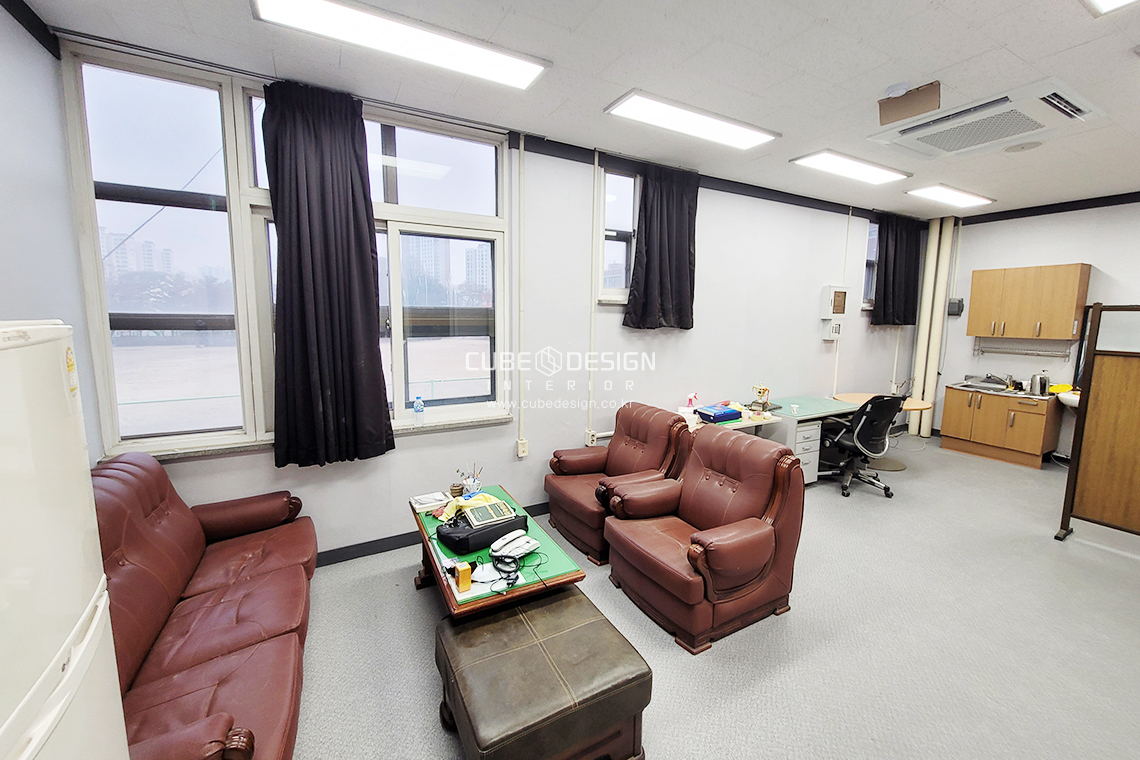 중학교 체육관 사무실내부는 기존제품군들을 모두 활용하였습니다.