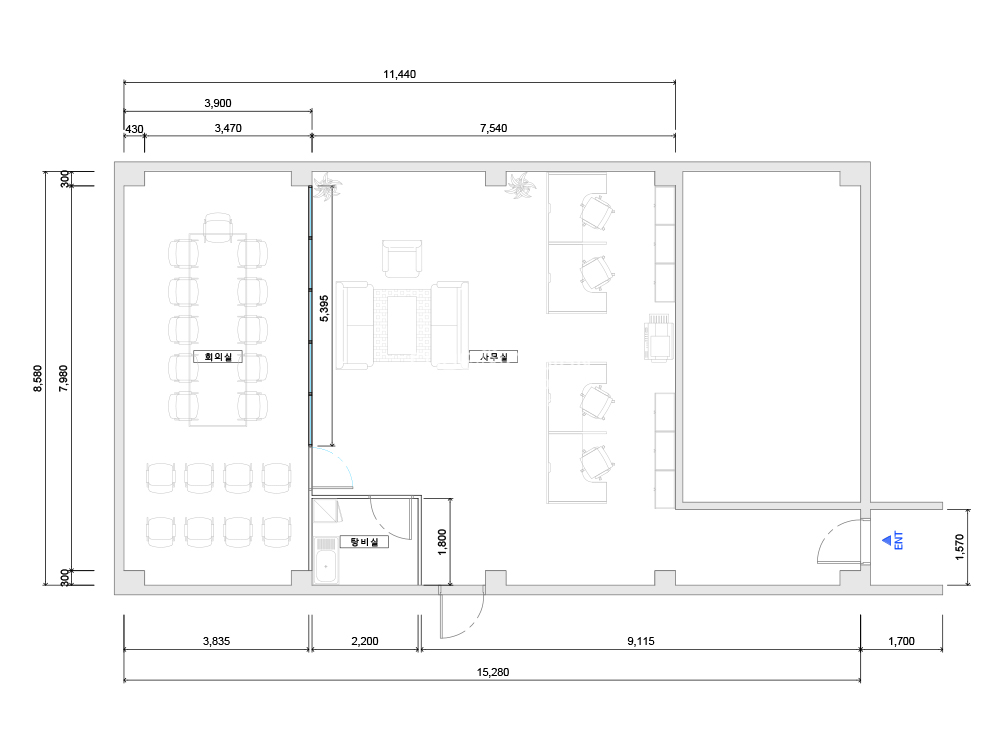 사무실구조가 정사각으로 되어있어 공간을 최소한으로 하기위해