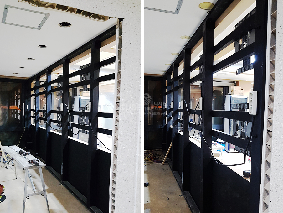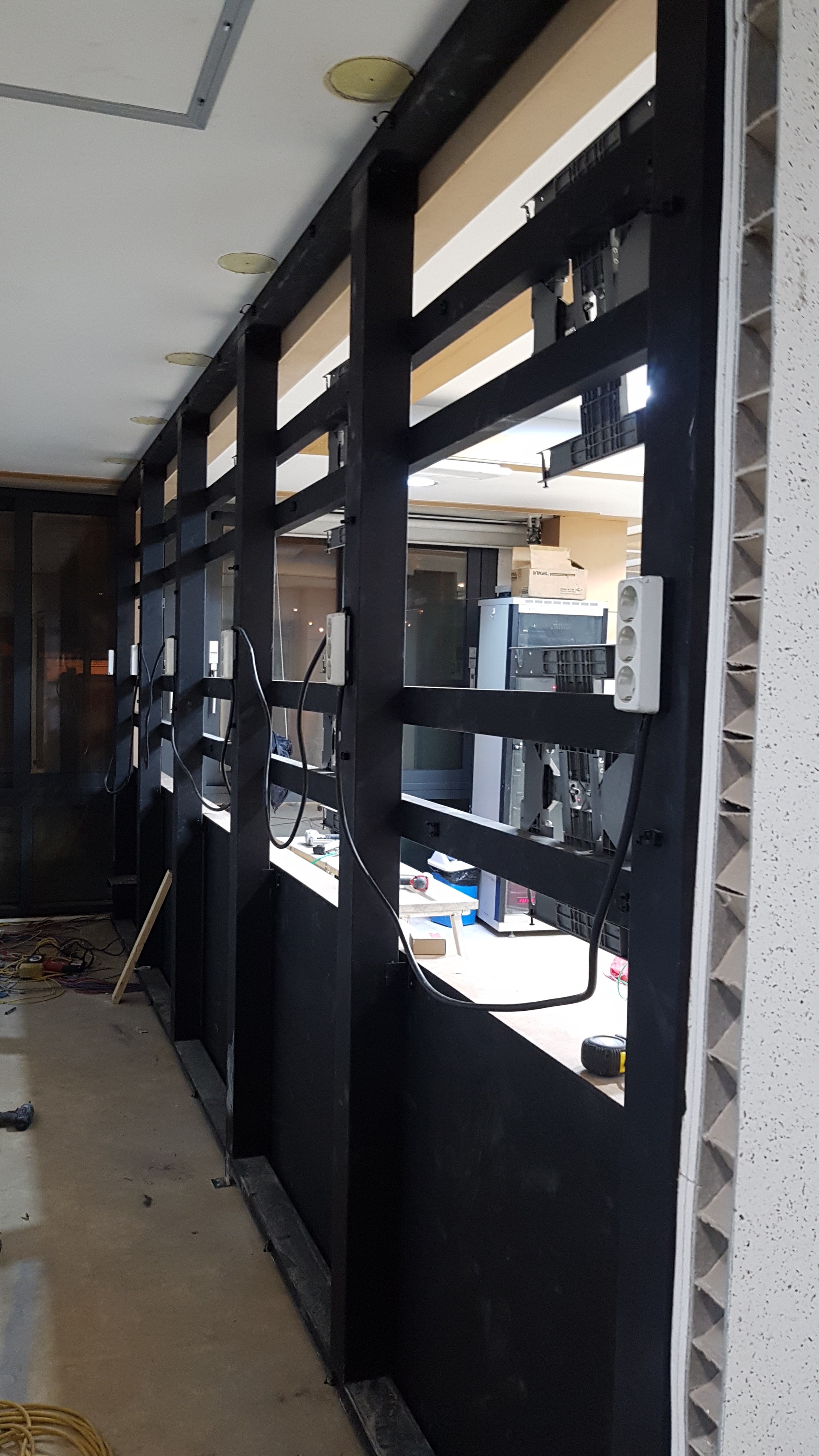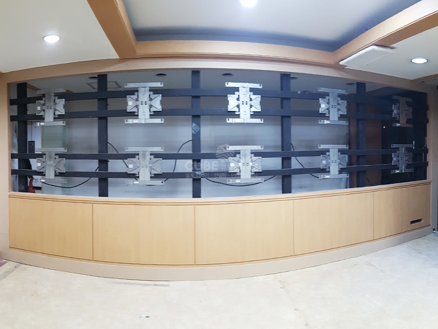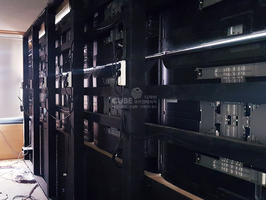 모니터를 많이 달아야 하기 때문에 벽내부에 무게를 지탱할수있도록 금속으로 구조물을 설치해줍니다.