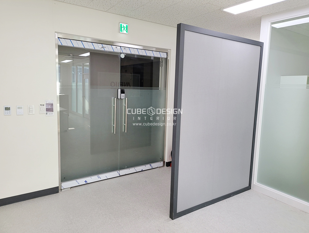 안녕하세요. 큐브디자인입니다. 오늘 소개해 드릴 현장은 용인시 수지구 광교중앙로 위치한 지식산업센터 25평 사무실인테리어현장을 소개해 드리겠습니다. 간단한 유리칸막이와 그레이톤 아트월의 조합으로 저렴하게 완성된 인테리어현장입니다!