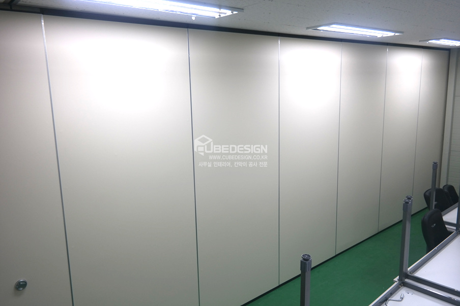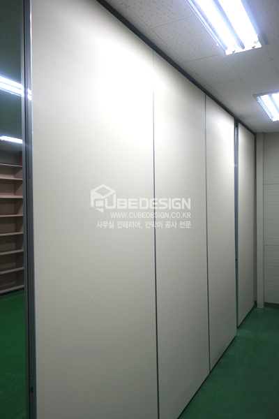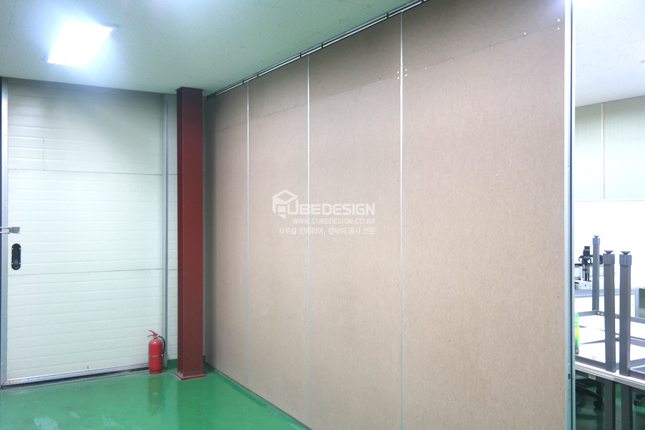 큐브디자인에서 경기도 수원시 권선구 산업로에 위치한 100평 규모의 제조공장에 무빙월(접이식이동식칸막이)칸막이공사와