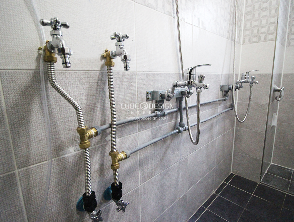 ▲ 기존 화장실 파티션과 변기철거후 샤워실로 리모델링