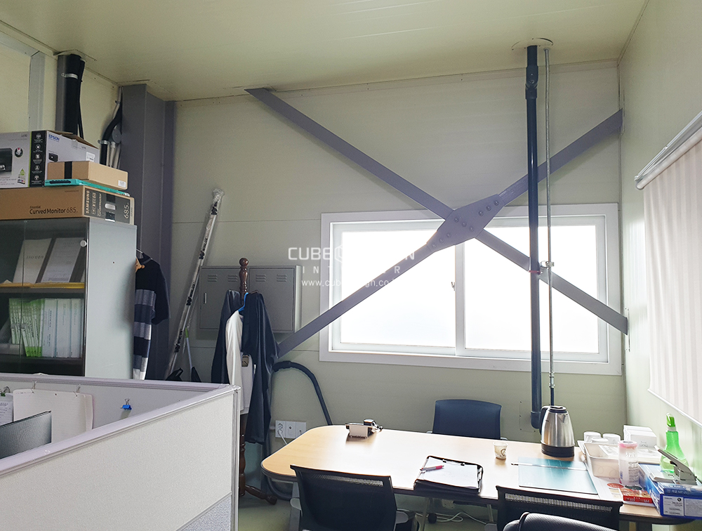 ▲ 외장판넬을 잡아주는 X벤더와 기둥면을 깔끔하게 인테리어마감