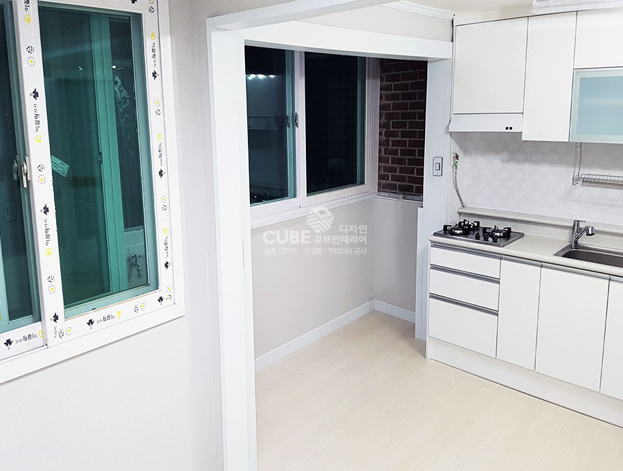 화이트 컬러 샷시와 마감처리로 깔끔하고 심플한 20평 빌라 인테리어현장입니다.