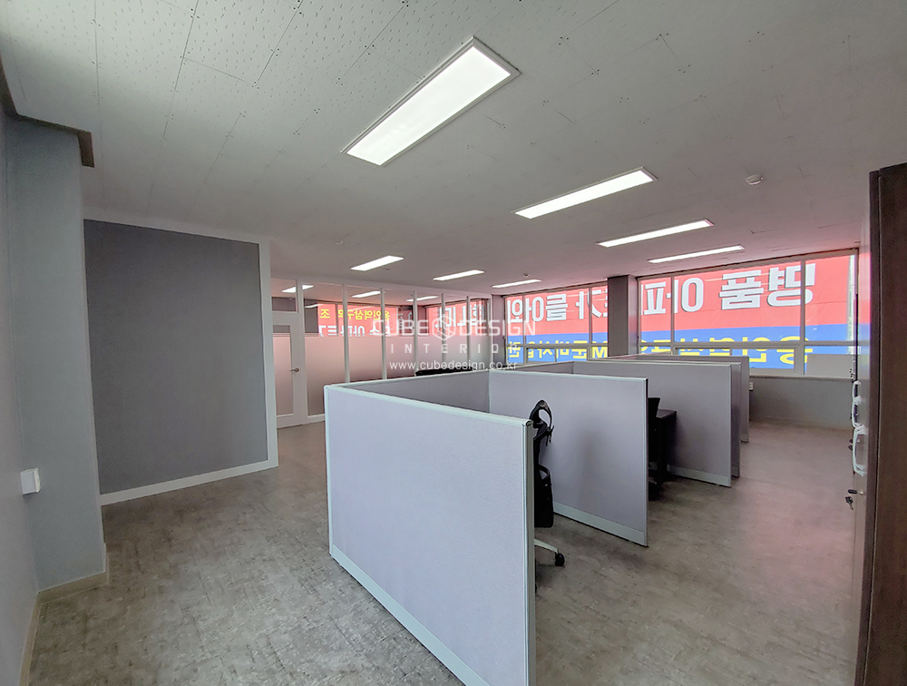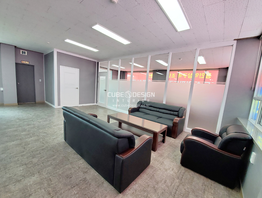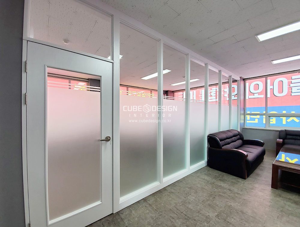 사무실과 회의실 가벽에는 저렴한 금액대의 유리칸막이로 시공되었습니다.