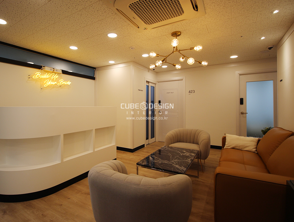 입주하시는 대표님과 수차례의 미팅 끝에 화이트 톤의 깔끔한 인테리어로 완성됐습니다.